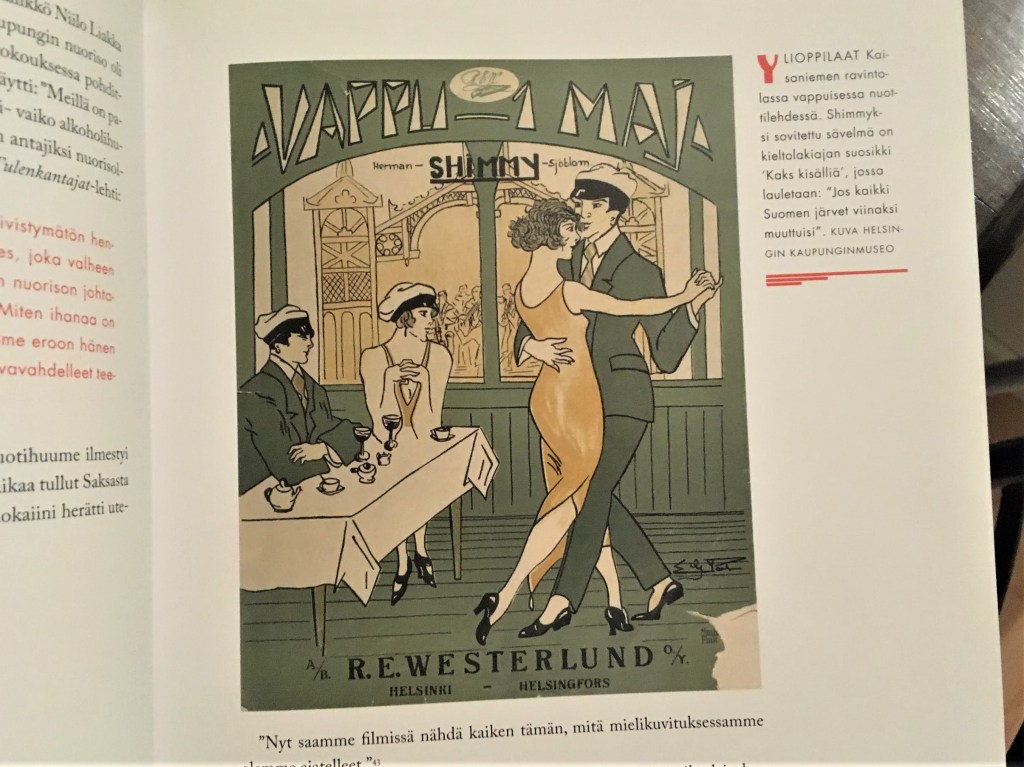 Kuvitus ja melko ilmava taitto antavat teokselle oman säväyksensä. Aikalaislähteitä on hyödynnetty paljon ja tekstissä vilisee niin lainauksia laulun sanoista kuin poliittisista kirjoituksistakin. Kieltolain lisäksi arvostelua herättää helsinkiläisnuorison pukeutuminen, liian feminiinisinä pidetyt nuoret miehet, nakkikioskien aukioloajat ja paheellisuuteen houkutteleva ulkomaalaisvaikutteinen musiikki.