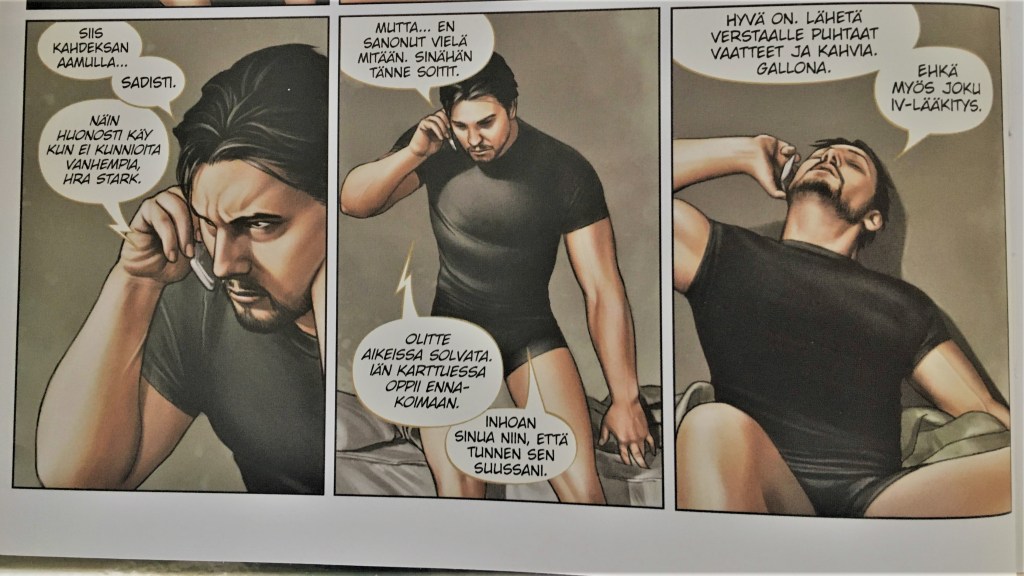 Ellis on pistänyt parastaan dialogiin. Tonyn moraalit ovat selkeästi vielä muotoutumassa käytännön tasolla, mutta huumori on jo taattua Starkia. Adi Granovin kuvitus tuntui alkuun melko kumiselta. Tarina kuitenkin vie mennessään.