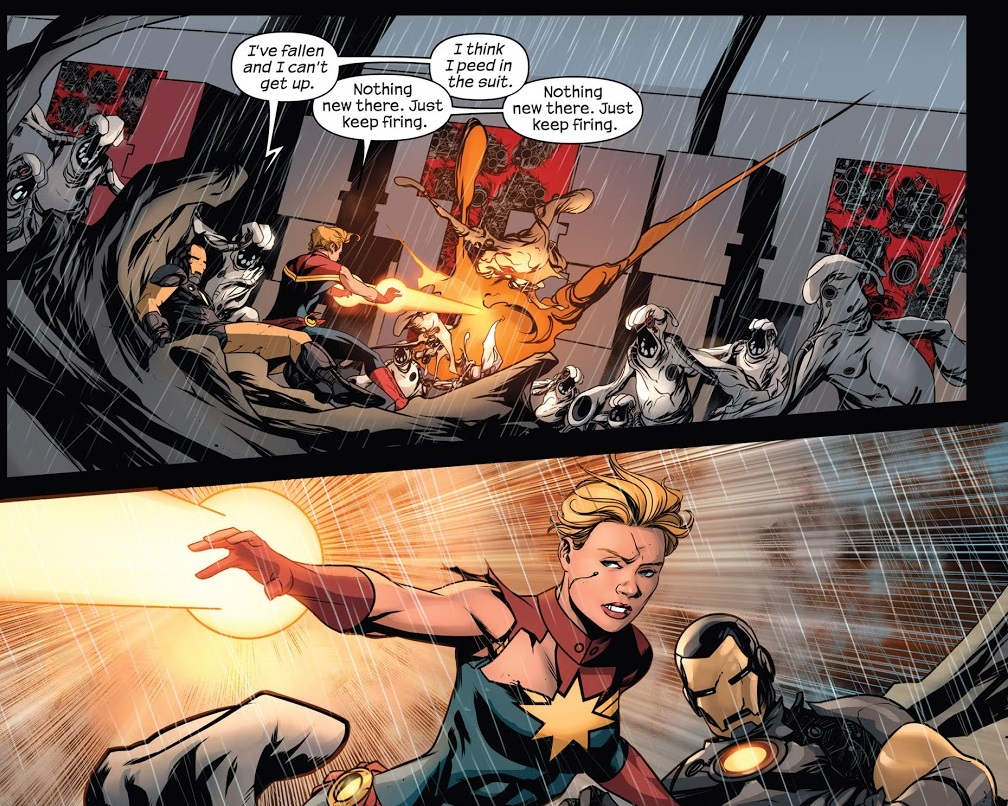 Ainoa miinus tulee siitä, ettei Tonyn mieltyminen teini-ikäiseen mutanttipahikseen jotenkin isällisen suojelevasti tee hirveästi järkeä hänen välinpitämättömän hahmonsa kannalta. Yildiray Cinarin kuvitus on ensiluokkaista ja Tony Stark on julkeampi kuin varmaan missään muussa sarjakuvaesityksessä ikinä aiemmin. Pidän myös tarinan loppuratkaisusta ja siitä, että Pepper Pottsille on annettu sarjiksessa juonellisestikin iso rooli.