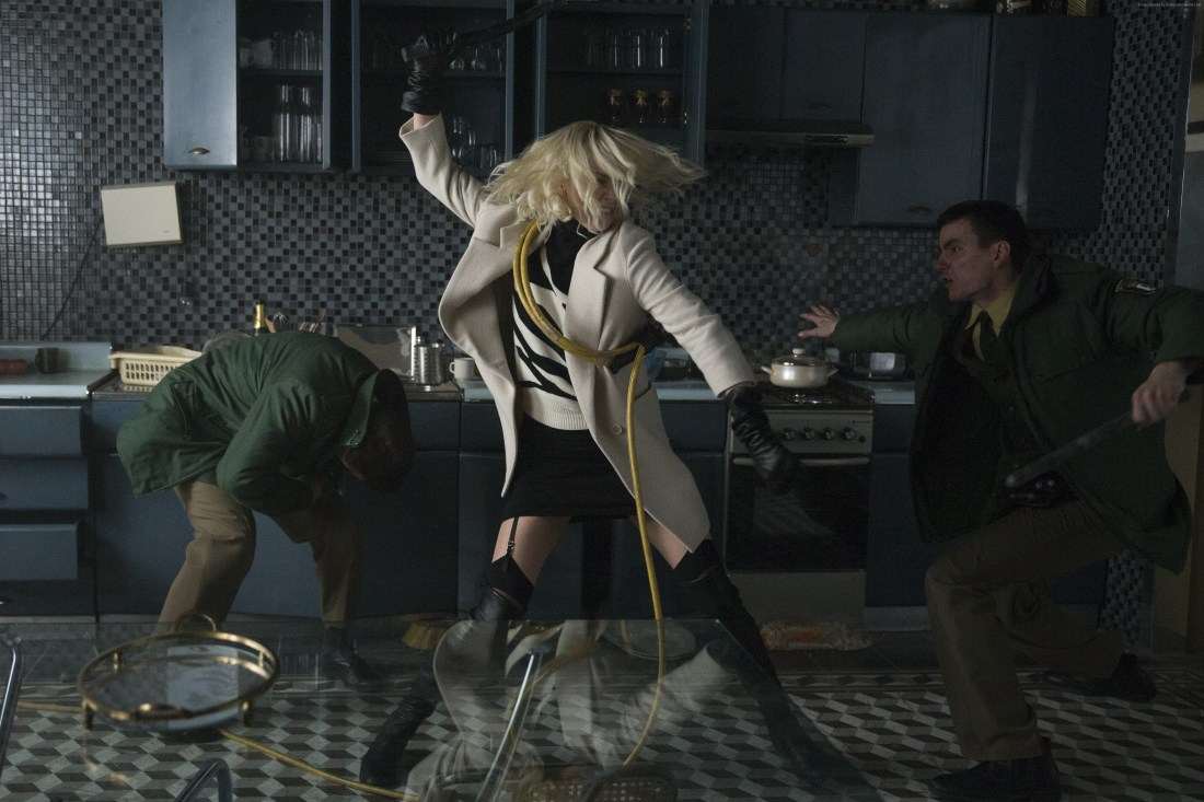 Charlize Theron antamassa Itä-Saksan pollareille kyytiä puutarhaletkulla Atomic Blondessa. [kuva 1] Toimintaelokuvan jättiläiset ovat vuoron perään täyttäneet teatterisaleja testosteronia huokuvalla räjähdysten ja konetuliaseiden papatuksen montaaseilla. Genren kovimmat nimet ovat suoranaisia käsitteitä itsessään. Kuka ei tietäisi, keitä ovat Dwayne "The Rock" Johnson, Jason Statham, Tom Cruise tai Sylvester Stallone - tai millaisia leffoja he tähdittävät? Voiko … Jatka lukemista Onko Charlize Theronista seuraavaksi toimintaelokuvaikoniksi? – Atomic Blonde (2017) & The Old Guard (2020)